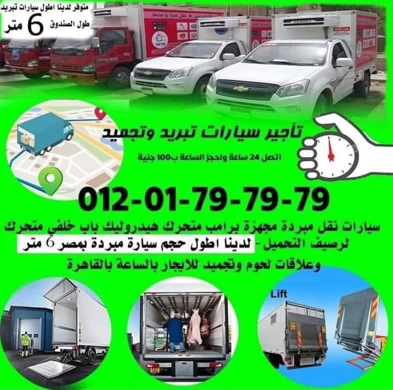 احجز سيارات النقل المبرد بالساعة الان 01201797979