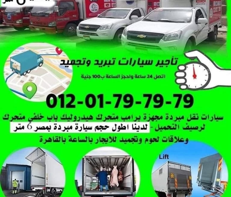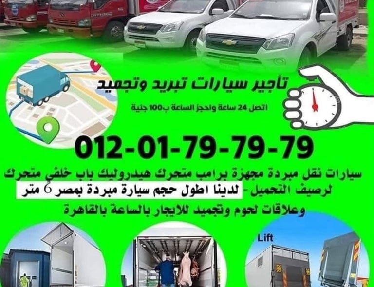 احجز سيارات النقل المبرد بالساعة الان 01201797979